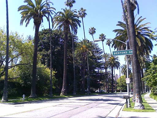 ショッピング後、ビバリーヒルズの高級住宅街を車で巡る。